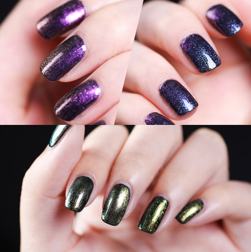 Attention Please: If you want to get the effect as picture show, you need to apply this gel on the black color before use Chameleon nail Gel