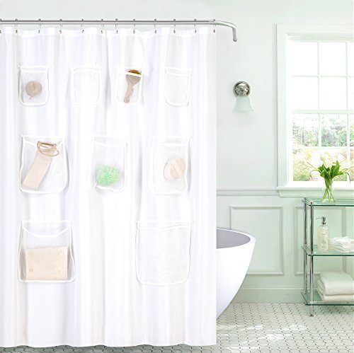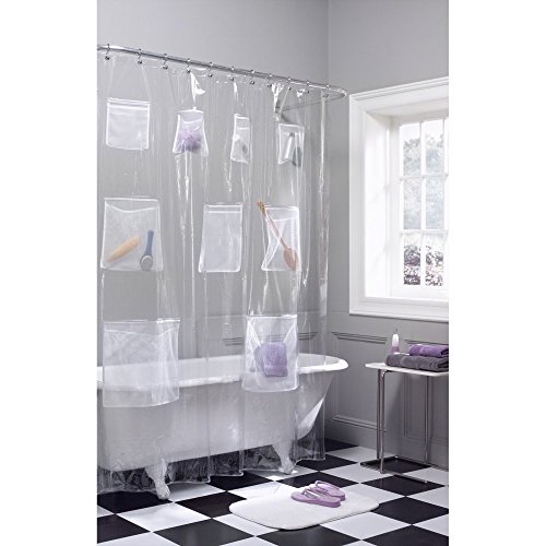 ALDECOR Clear PEVA Vinyl Shower Curtain With Mesh Pockets, Water Resistant & Mold Resistant, 72x72 Inch