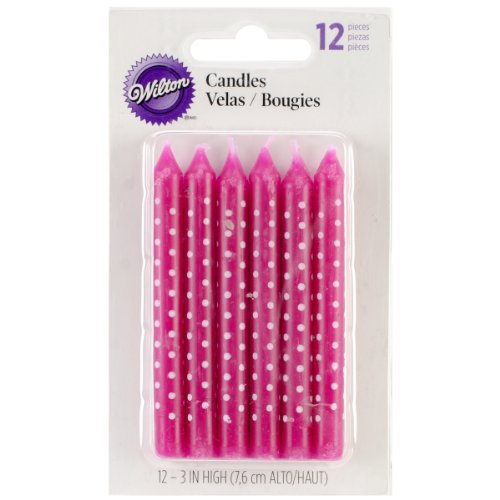 Wilton W7493 Candles, 3-Inch, Pink with White Dots, 12-Pack