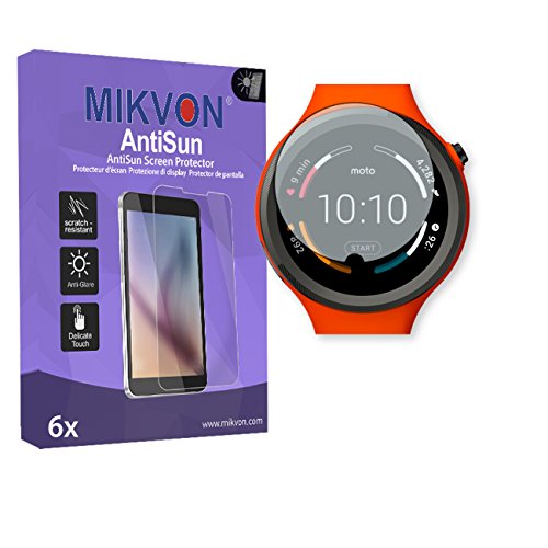 -. Binding : Electronics -. Brand : MIKVON -. EAN : 4057149177571 -. Feature : *** intentionally smaller than the display due to its curved surface *** Film screen protector anti reflections for your screen Motorola Moto 360 Sport Smartwatch / High quality screen protection against scratches for your Motorola Moto 360 Sport Smartwatch screen / It is possible to remove and apply again the protective film without any bubbles or residues at any time / It increases the readability of the screen under strong light sources and sunlight / Made in Germany -. Label : MIKVON -. Manufacturer : MIKVON -. Model : MM182831 -. MPN : MM182831 -. PackageQuantity : 1 -. PartNumber : MM182831 -. ProductGroup : Wireless -. ProductTypeName : CONSUMER_ELECTRONICS -. Publisher : MIKVON -. Studio : MIKVON -. Title : 6x Mikvon AntiSun Screen Protector for Motorola Moto 360 Sport Smartwatch - Retail Package with accessories (intentionally smaller than the display due to its curved surface)