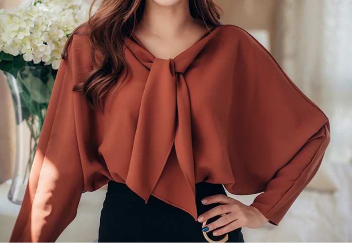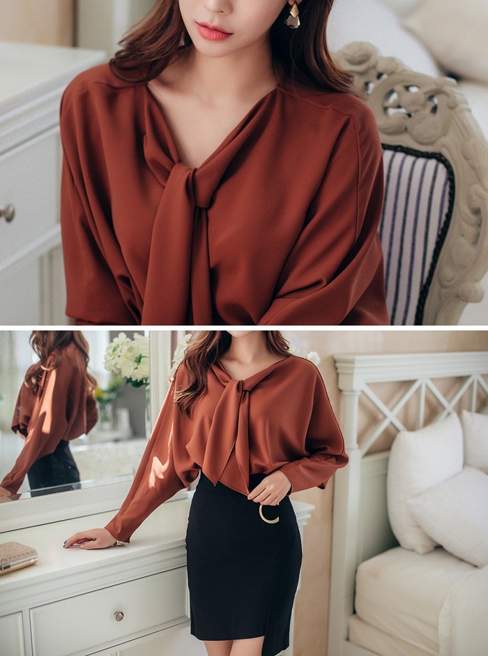 商品名:ブラウス プルオーバー 無地 きれいめ ボウタイ