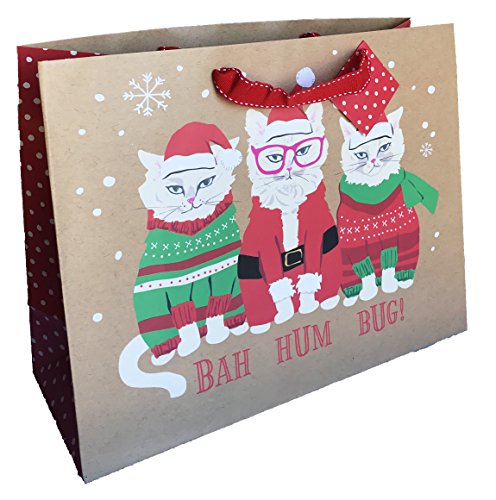 Bah Hum Bug Funny Grumpy Cats in Holiday Attire Christmas Themed Gift Bag 10" x 12.75"
