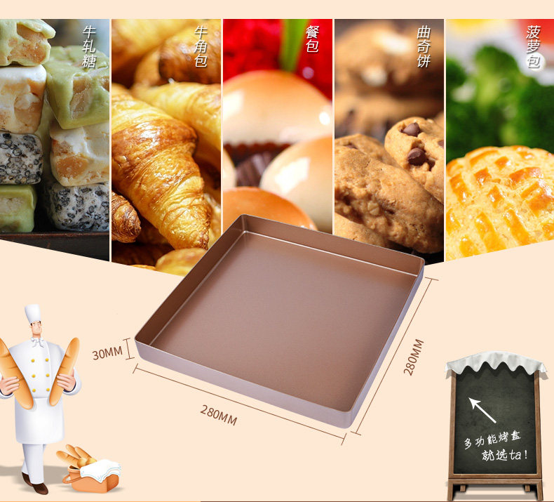 烘焙工具正方形牛轧糖蛋糕卷浅盘 模具不粘饼干模烤盘烤箱用