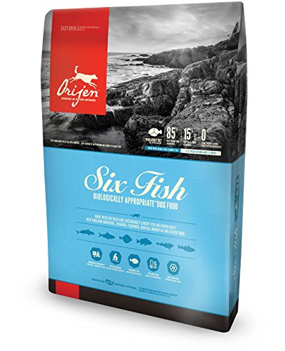 -. Feature : Orijen Six Fish Dog Food, 25-Pound Bag / Brimming with 38% richly nourishing protein and limited to 20% low-glycemic carbohydrates to nourish all dogs according to their evolutionary and biological needs. / A full 2/3 of our fish is FRESH (refrigerated, without preservatives) or RAW (flash-frozen, without preservatives), including the top 6 fish ingredients. / Nutrient-dense WholePreyTM ratios of fresh whole fish (including meat, organs, and cartilage) provide virtually every nutrient your dog needs to thrive - only zinc and copper are added. / Our dried fish are specially prepared at 200ºF from fresh, whole, wild-caught fish to create a concentrated source of richly nourishing protein that cannot be supplied by fresh fish alone. Infusions of freeze-dried cod liver enhance flavor and palatability naturally, making ORIJEN deliciously tasty, even for fussy eaters.