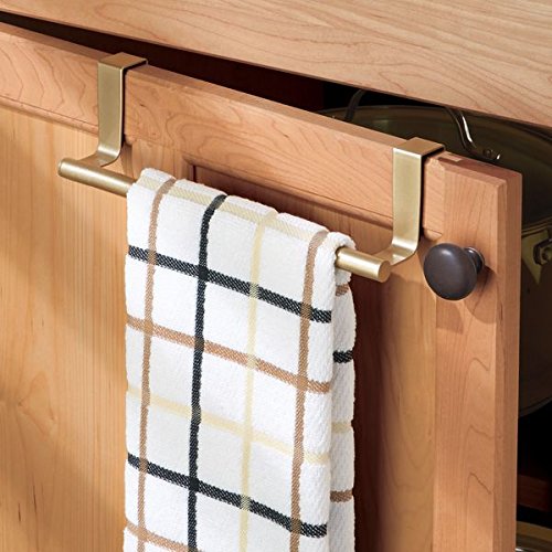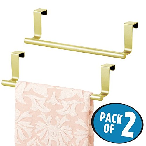 mDesign Over-the-Cabinet Towel Bars for Kitchen Hand Towels, Dish Towels - Pack of 2, 9", Gold/Brass