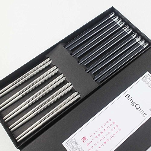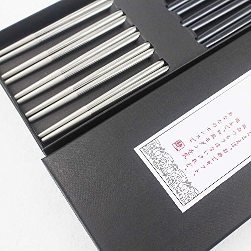 BingQing 5 pairs Beautiful pattern Alloy Stainless Steel Chinese Style Chopsticks. Stainless Steel Alloy chopsticks-black+silver