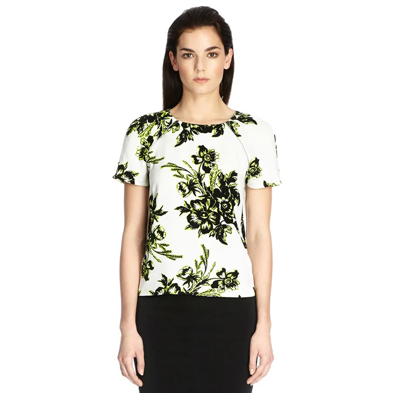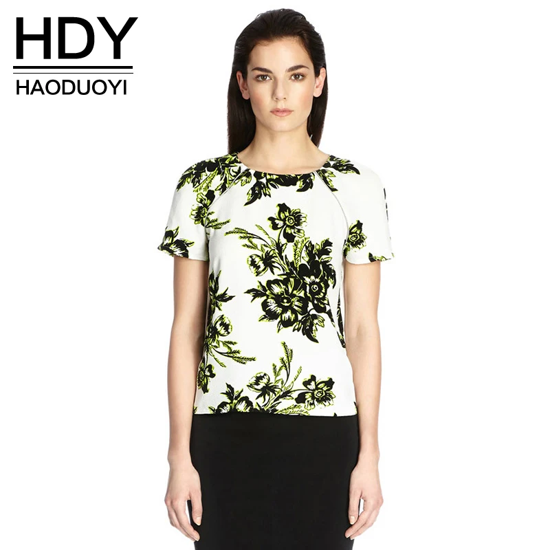 HDY Haoduoyi Fashion Floral Printe Tee Women Short Sleeve Crew Neck Female Pullover Tops Slim Loose Zippers Chiffon T-shirt | |||||||||||||||||||||||||||||||||||||||
