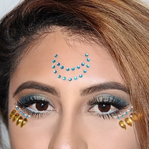 PixieLust Face Jewels Gem Bindi Body Jewelry Stickers Rhinestone Tattoo- Teal Gold