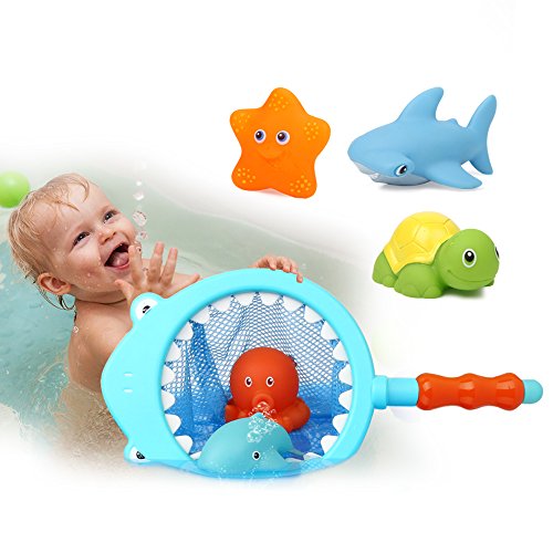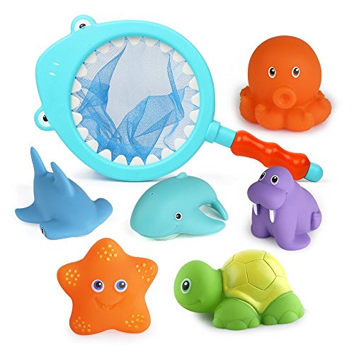 -. Title : Colorful Bath Water Toys for Toddlers & Boys & Girls - Beiens Floating Animals Squirters Toys/ Fishing Set with Spoon-net, Baby Bathroom Pool Accessory (7-Pack)