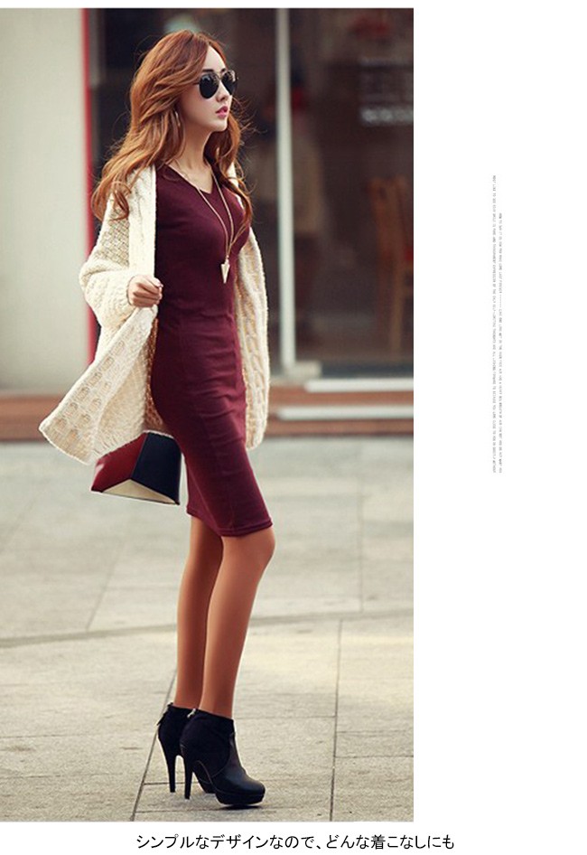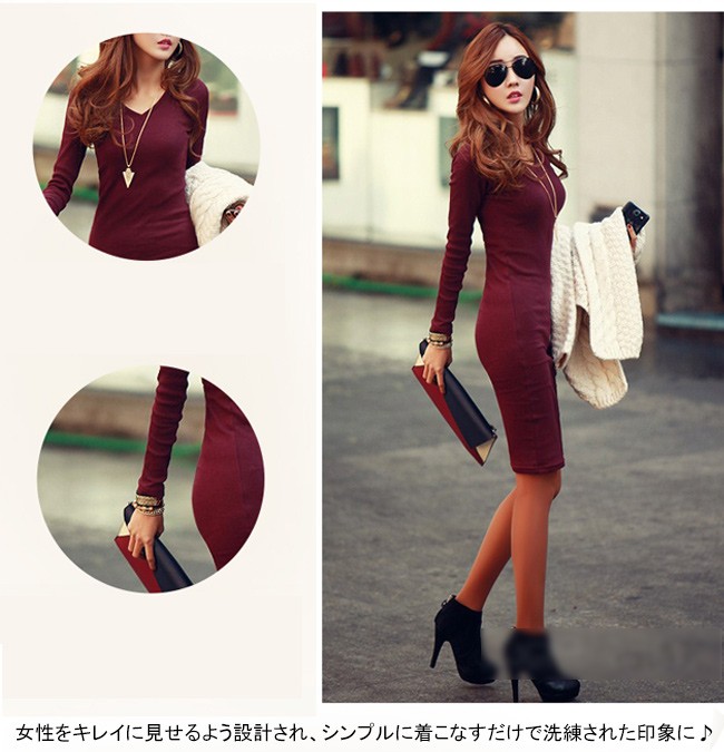 | 商品名 | 裏起毛ワンピース タイトワンピース インナーワンピース レディース 膝丈 つなぎワンピース ストレッチ 無地 着痩せ 通勤通学 外出 OL 美シルエット 2017秋冬新作 |