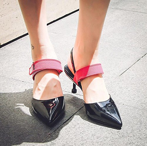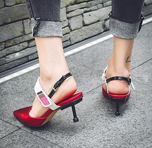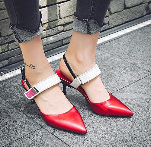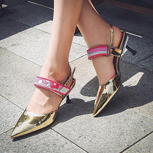 Upper material: leather Sole Material: Rubber Style: Europe and the United States Toe shape: pointed Heel height: 6.5cm Heel shape: fine heel Dressed: Velcro Function: non-slip Style: fashion sandals Pattern: fight color Soles craft: viscose shoes Inside Material: Microfiber Upper height: low top After the style: after the empty Side style: side empty Color: red, black, silver, gold, beige Size: 34,35,36,37,38,39,40,41,42,43 0 |