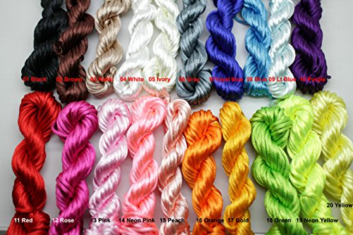 New 20bundles 200Yards 2.5mm Satin/Rattail Silk Cord for Necklace Bracelet Beading Cord