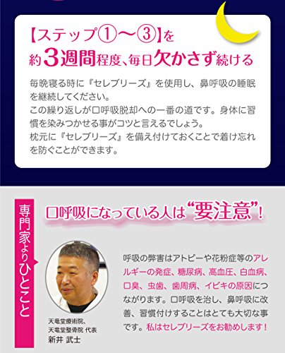 Close your mouth at bedtime, with a mouse tape to encourage nose breathing is the correct breathing technique, the principal of the respiratory tract as well as people annoying, you have to increase the effect on snoring imposing a burden on the heart. "Celebrity Leeds" is a mouse tape a habit to close the mouth open while sleeping. Will incorporate the bacteria and viruses into the body by the mouth breathing, it will lead to a weakened immune system. Also in the oral cavity is also cause problems that lead to the cause of tooth decay and bad breath by drying. Glue used in the tape has been developed for the skin, it is the only glue for the human body, which is also used in adhesive bandages. or soggy even after the close of the paste of the tape celebrity Leeds em> long-mouth, we use a hard or rough material. Br> In addition not only gentle to the skin, it also combines once not peel off until the morning is going to bed and paste it into the mouth pressure-sensitive adhesive force. Br> There is also a moderate stretch, peeling difficult, there is no discomfort when worn so also to accommodate the movement of the mouth of the muscle. Br> smell without any, not worried at all be attached nose, around the mouth. Br> · continue we can expect the habit of human original nose breathing by. Br> The effect of nasal breathing tape, by closing the mouth, reduce the dryness of the mouth, it can be expected to prevent or sleep effects of snoring.