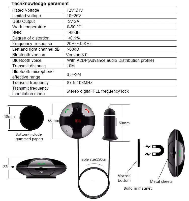 Special Features:Bluetooth / FM Transmitter / MP3 Player