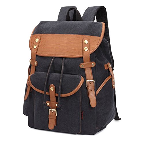 -. Title : KAUKKO Vintage Cotton Canvas Laptop Bag Computer Backpack Rucksack Daypack Weekend Shoulder Bags for Men and Women Travel