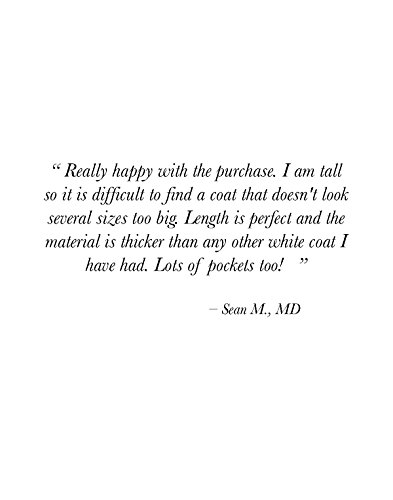 ♦ Typical lab coats use excess fabric in the waist and torso, creating a pendulous appearance. Our slim-fit lab coat solves that problem without being tight.
