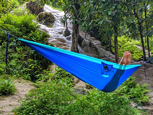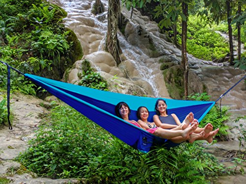 ✔ COMFORTABLY SUPPORTS 2 PEOPLE AND UP TO 661 LBS. OUR DOUBLE HAMMOCK IS 4.7 SQUARE FEET BIGGER THAN ENO! Enjoy all the space by yourself or plenty of room for to share with your friend or loved one! Super comfortable our ripstop nylon is the same lightweight, super strong material used in yacht sails, spinnakers, hot air balloons and by skin divers. Machine washable. Sets up in minutes! DON'T WAIT, GET YOURS TODAY!