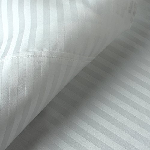 -. Title : 1-Piece Fitted Sheet Fits 11'' Deep Pocket Queen Size White Striped Egyptian Cotton-400 Thread Count