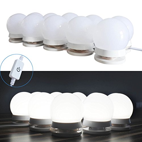 10 Hollywood style dimmable LED light bulbs, provide plenty on brightness to makeup in dark. 4000K light bulbs be recommended by professional makeup artist. It is soft and not dazzling, so your eyes not be hurt by the light and it is no problem to makeup for a long time.
