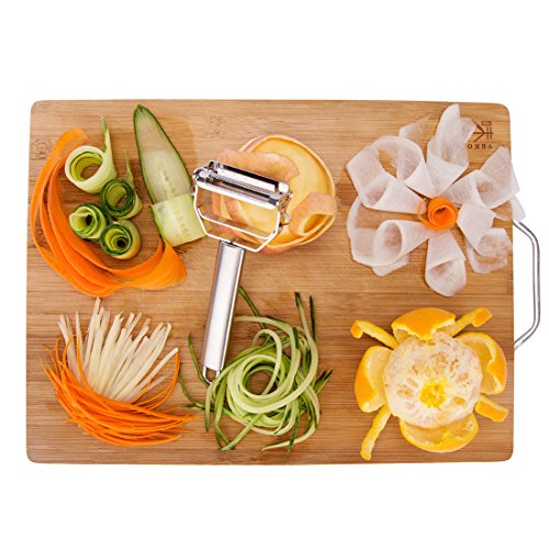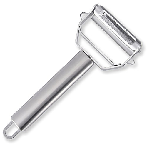 Easily peel potatoes, pears, carrots, cheese, cucumbers and zucchinis with double-sided blade.