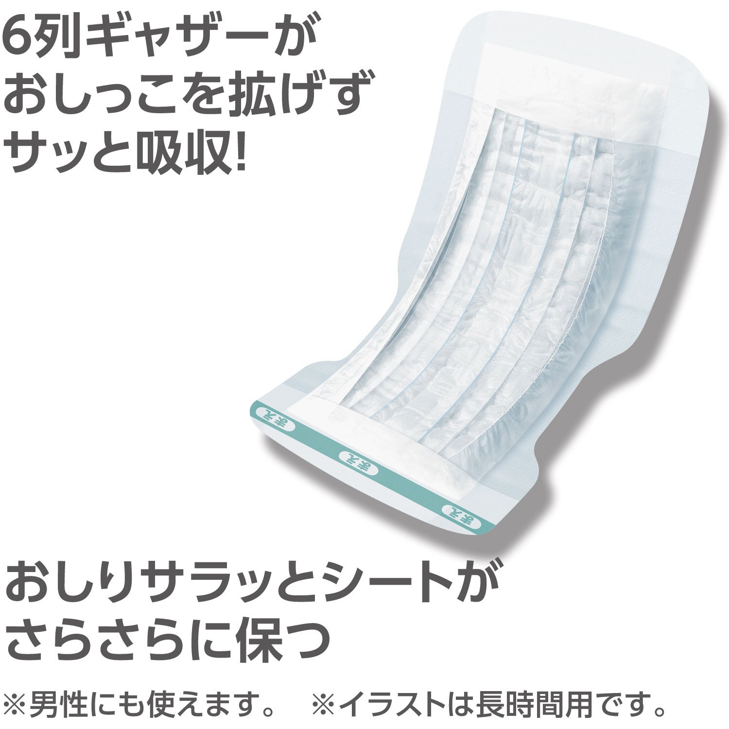 Absorbs urine firmly with thick absorbing structure and folded sheet.