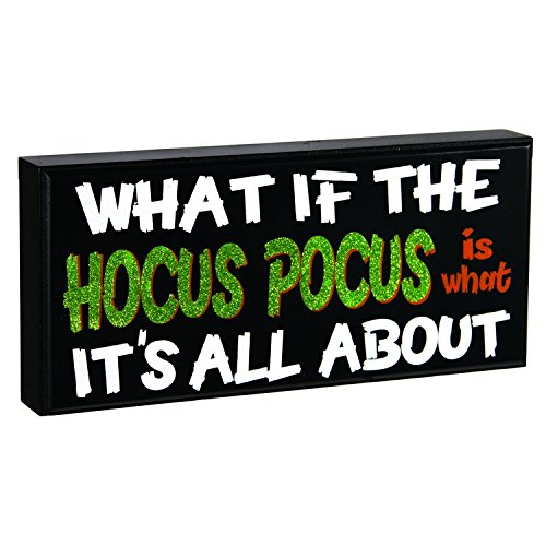 -. Feature : What if the HOCUS POCUS is what it's all about / Halloween Humor Decor / Paint & Glitter Front; Wood Construction / 11" x 5" x 1 1/2" approx. / Ohio Wholesale