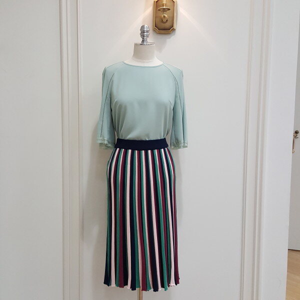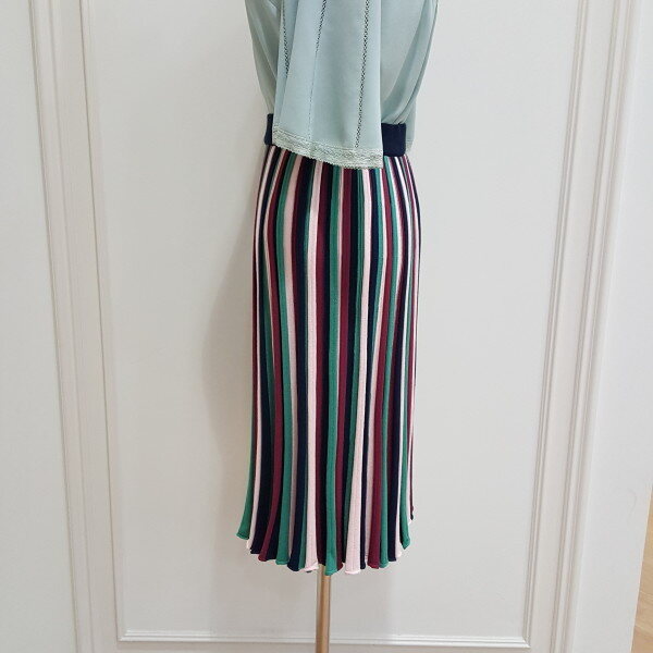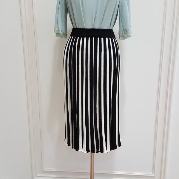 세로스트라이프가 슬림해보이는 효과를 주는 니트스커트. 멀티칼라와 블랙/아이보리칼라 진행. 모나코 레이스베스트와 멋스럽 게 코디가능