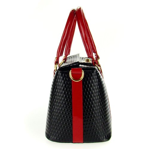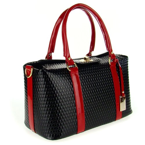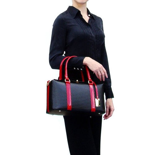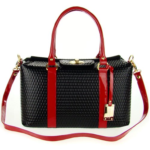 -. Brand : Giordano -. Color : Black & Red -. Department : womens -. EAN : 0609132974229 -. Feature : Height 7.5" (19cm), Width 13.5" (34.3cm), Depth 7" (17.8cm) / Handle drop 5.5" (16.5cm). Length of detachable shoulder strap 44" (111.8cm) / Two main compartments separated by a zippered compartment. Large interior zip and two multifunctional slip pockets. / Flap with turn-lock closure. Gold-tone hardware. Nylon fabric lining. / Made in Italy! Comes with a dust bag. RETAIL P.R.ICE: $659 -. PackageQuantity : 1 -. ProductGroup : Shoes -. ProductTypeName : HANDBAG -. Title : GIORDANO Italian Made Black & Red Leather Large Designer Structured Tote Handbag -. UPC : 609132974229