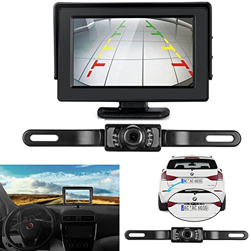 ZSMJ Backup Camera and Monitor Kit Single Power for Rear View/Fulltime View Optional Reverse Camera/Rear View Camera Waterproof Night Vision 4.3 Display with 20ft Video RCA Cable Grid Lines