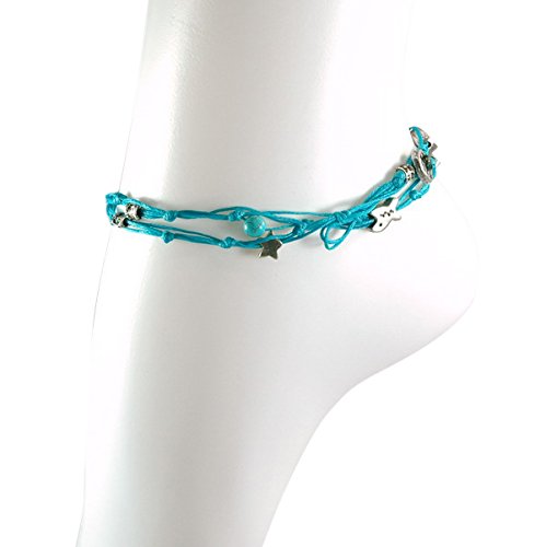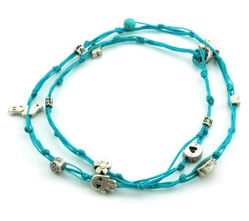 -. Binding : Jewelry -. Brand : MIZZE Made for Luck Jewelry -. Department : womens -. Feature : 10.5" DOUBLE WRAP ANKLET for COMFORTABLE FIT: The double wrapped anklet is 21" in total length - so size 10.5" and wraps twice around the ankle. / TURQUOISE HANDMADE WAX WIRE TIES ANKLET: The ties anklet is made with Turquoise wax cotton (durable) and various charms. / HAPPINESS & LOVE CHARMS ANKLET: The charms include the Hamsa Hand, Bird of Song, Heart and Star charms. / QUALITY MATTE SILVER PLATED CHARMS: The charms have a quality matte dark silver finish plating. / **100% FULL MONEY BACK GUARANTEE: We stand behind our brand and provide a 100% full Money Back Guarantee. If you are unhappy with your Charms Anklet, for any reason please contact us -. Label : MIZZE Made for Luck Jewelry -. Manufacturer : MIZZE Made for Luck Jewelry -. Model : MZ6009TQS -. MPN : MZ6009TQS -. PartNumber : MZ6009TQS -. ProductGroup : Jewelry -. ProductTypeName : FASHIONNECKLACEBRACELETANKLET -. Publisher : MIZZE Made for Luck Jewelry -. Studio : MIZZE Made for Luck Jewelry -. Title : Turquoise & Silver Double Wrap Ties Handmade Charm Anklet for Good Luck & Prosperity
