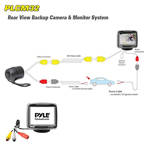 Pyle Backup Car Camera Rearview Monitor System - Parking and Reverse Assist w/ Waterproof and Night Vision Abilities, 3.5" Monitor Display Screen, Wide Angle Lens & Distance Scale Lines - (PLCM32)