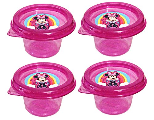 Disney Minnie Mouse Mini Plastic Reuseable Snack Containers with Lids 4 Fl Oz (Set of 4)