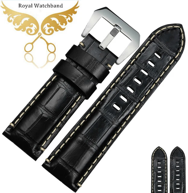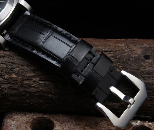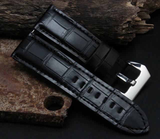 | [해외] 시계 밴드 24 미리메터 교체 새로운 남성 블랙 악어 정품 가죽 시계 밴드 스트랩 팔찌 실버 금속 버클 |