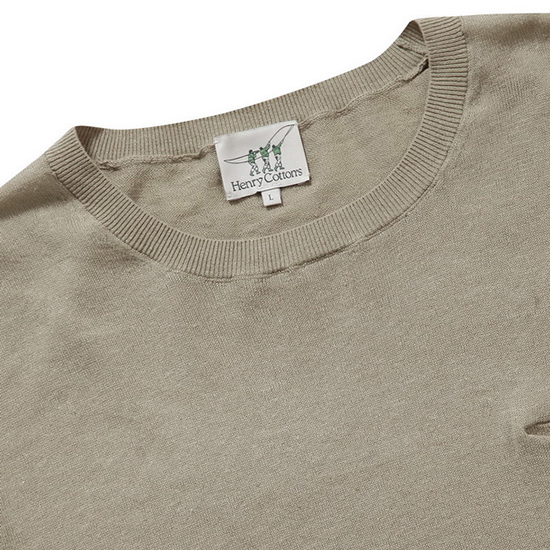 - 은은한 조직감의 텍스쳐가 돋보이는 남성 니트.- 가볍고 시원한 린넨코튼 소재로 청량감을 전해줌.- 기본 라운드 넥에 이지한 FIT 라인으로 깔끔함.- 가슴판 포켓 디테일을 적용하여 포인트를 더해줌.- 네크라인,소매,밑단의 립조직으로 실루엣을 잡아줌.- 밑단 사이드 부분의 로고 자수로 완성도를 높여줌.- 다양한 하의와 세미 캐주얼룩 코디 연출이 용이함.- 이태리 INDUSTRIEES사에서 수입한 헨리코튼 오리지널 제품.