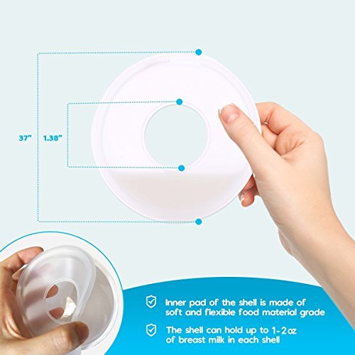 -. Feature : Milk Collector- Our breastshells are designed to collect up to total of 4 oz of breast milk leak while breastfeeding.Prevent breast engorgement and leakage of milk into your shirt.Save time spent on pumping. / Made Of Safe Material -Latex free,BPA free,non toxic,FDA approved,Children's Product Certificate (CPC) / Reusable And Easy To Clean- Each breast shell comes apart into 2 pieces so it is easy to clean and sterilize like bottles.Unlike nursing pads,our breast shells are reusable . / Designed With Soft Silicone Pads-The inner section is lined with soft silicone to ensure comfortable wear for a long period of time / Acts As Breast Shield-The breast shells could be worn to protect sore nipples from rubbing against the clothes.Air vent on top helps with air circulation to heal cracked nipples.
