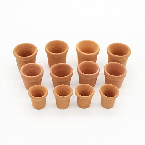 -. Title : MonkeyJack 1:12 Scale Dollhouse Miniatures 12pcs Ceramic Flowerpots for Fairy Garden Plants