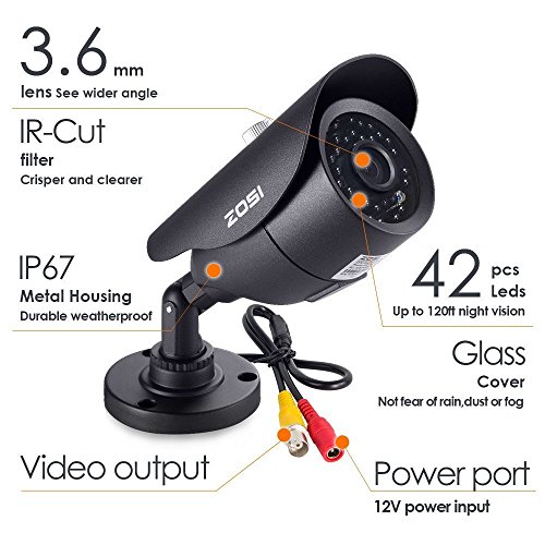 -. Title : ZOSI 1/3" CMOS 1000TVL 960H CCTV Home Surveillance Weatherproof 3.6mm lens with IR Cut Bullet Security Camera - 42PCS Infrared LEDs, 120ft IR Distance (Certified Refurbished)