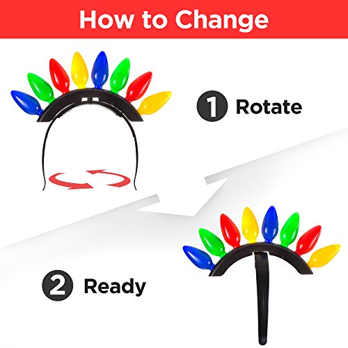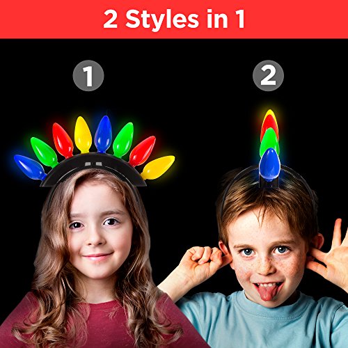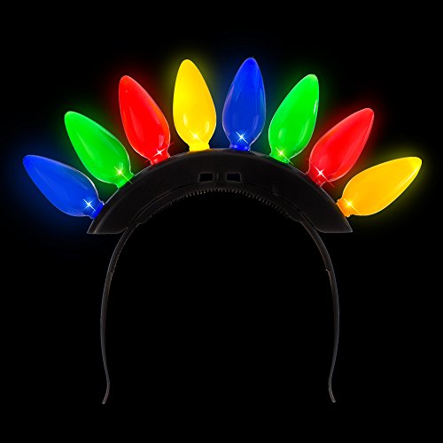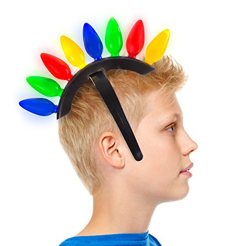 Studio : Windy City Novelties Publisher : Windy City Novelties Binding : Toy Product Description Rock n Roll this holiday season with the LED Christmas Bulb headbands. This colorful light-up holiday headpiece features 2 separate looks in 1; with a simple twist, this horizontal tiara-style headband morphs into a merry mohawk. Containing 8 distinctive Christmas bulbs that flash and blink in 6 distinct light patterns (from super fast to steady on), you can cycle through the lively light modes and quickly feel equipped to party on all night long at any Ugly XMAS sweater party-turned-mosh pit; simply push the tiny button toward the top. The required batteries are included installed. Also serves as a fast fun photo booth prop, too, so start snappin' those selfies! Make sure to think about all your rock n' roll brethren; these spikey headbands make great stocking stuffers and make great holiday gifts for boys, girls adults, from the North Pole to the South, as one size fits most. Are you ready to rock? 0