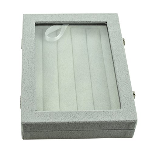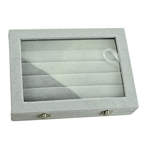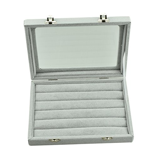 Argositment 9.45in x 6.97in Glass Top Gray 7 Ring Rows Tray Jewelry Display Case