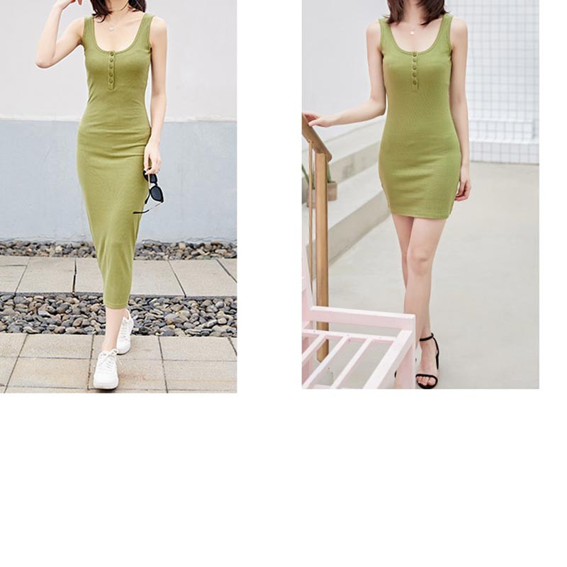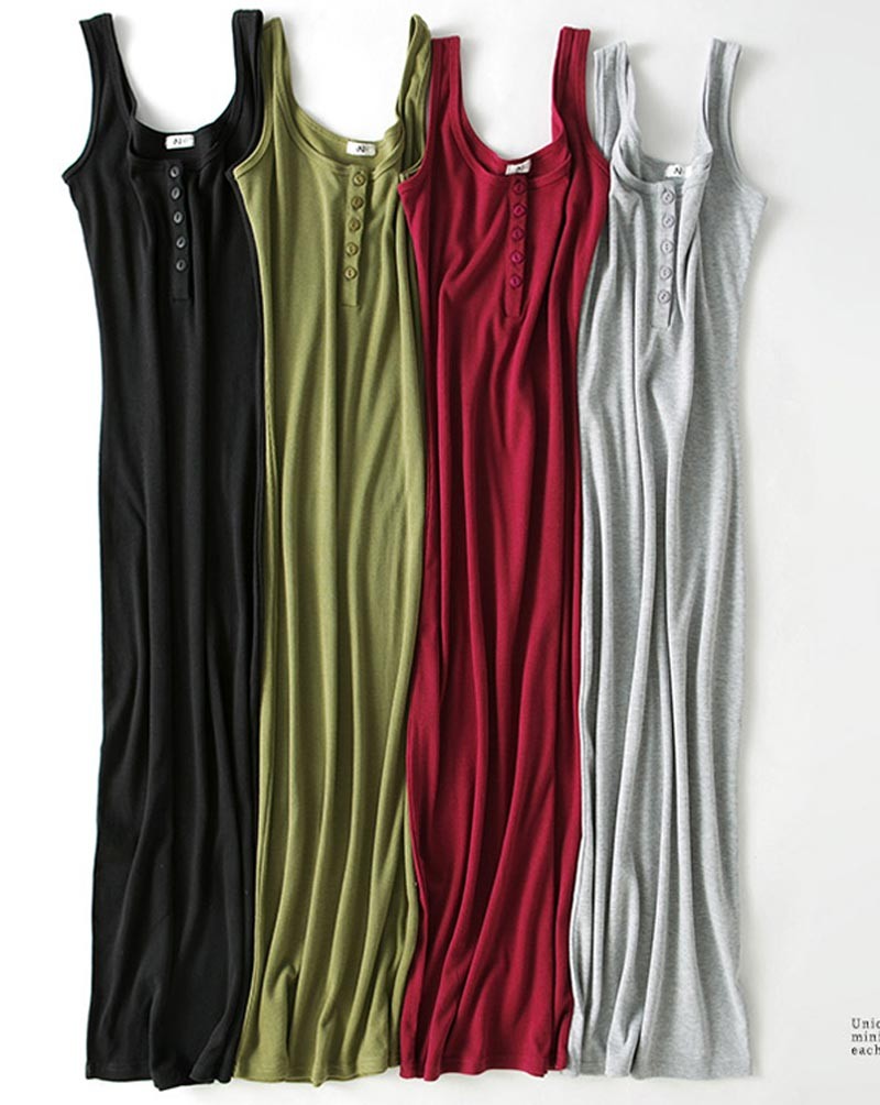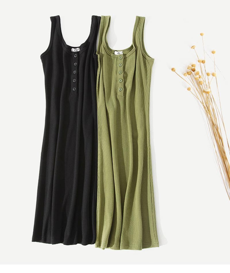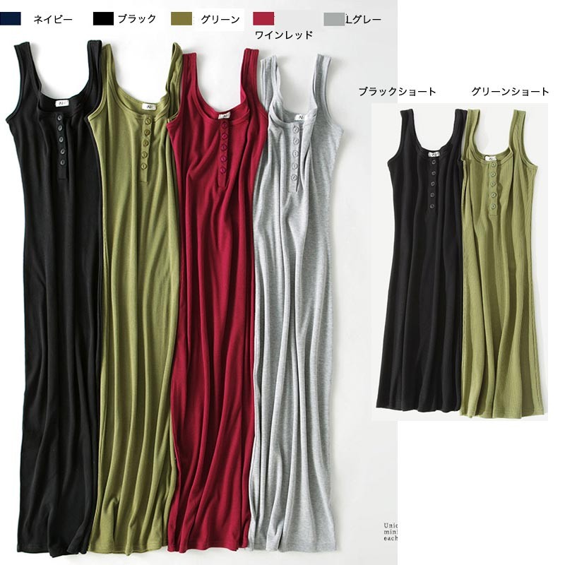 前ボタンデザインタンクタイプのノースリーブワンピースです♪