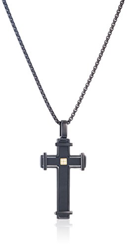 Men's Stainless Steel Cross with Black Cubic Zirconia on Chain Pendant Necklace, 24"
