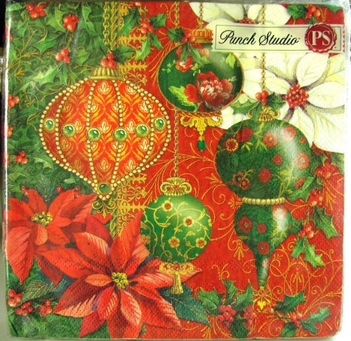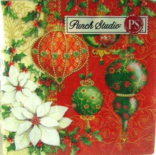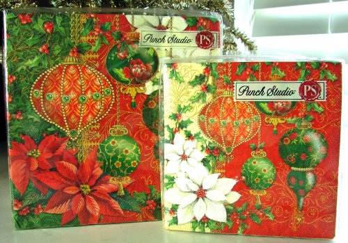 -. Title : 40 Ct Punch Studio Christmas Ornaments Paper Napkin Set ~ Luncheon (20) + Beverage (20) Holiday