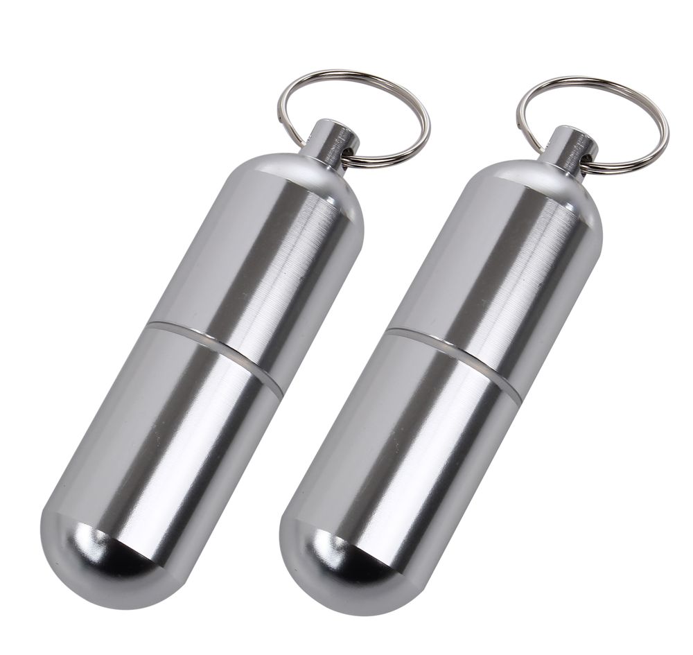 【2個セット】いつでもどこでも薬を携帯 キーホルダー 型 ピルケース 幅広タイプ シルバー