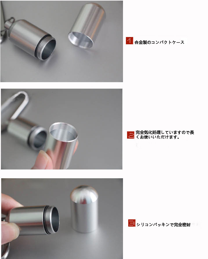 薬の保管にも安全な合金とシリコンのパッキンでしっかり密封しているので安心です。