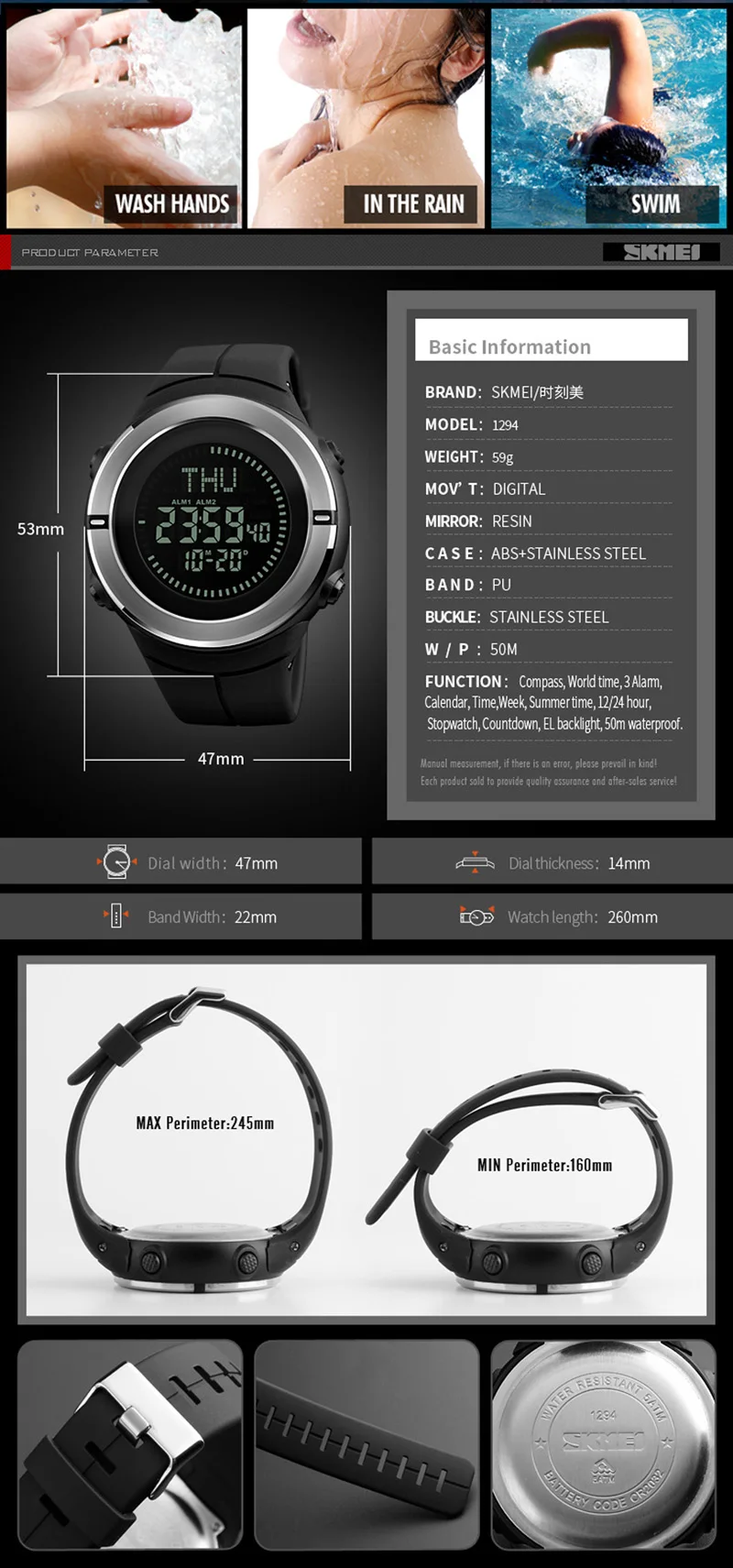 Water Resistance Depth:3Bar