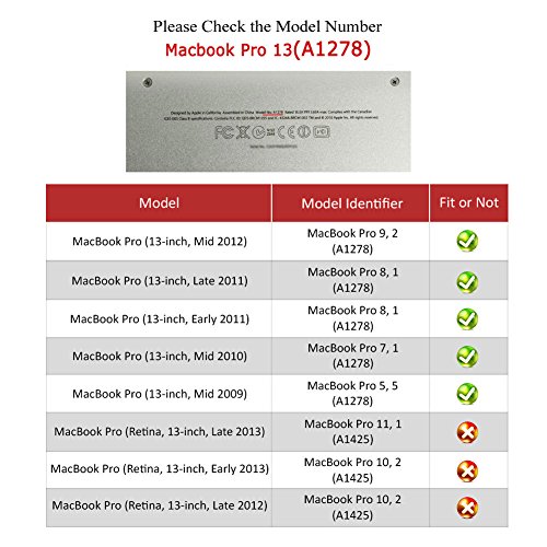 -. Binding : Personal Computers -. Brand : Vasileios -. Feature : Case Design lets you Open/Close your MacBook all the way and Access to all Ports, USB, Thunderbolt, HDMI, SD Card, Power, Audio Out. No cut out design, Apple Logo Shine through the case. / Material: Polycarbonate. 2-piece light weight hard Shell covers with the TOPIDEAL installation guide.*Case Protect your MacBook from scrapes and scratches.Fully vented for safe heat disbursement. / Designed to fit Apple MacBook Pro 13-inch, Model: A1278 (Please check your MacBook Model #),NOTE: Case Do NOT Fit MacBook Pro 13-Inch with Retina Display. / Anti-skidding and semi-translucent frosted finish humanized design will make you feel to be more comfortable,Silky-Smooth satin-touch Hard Protection. -. Label : Vasileios -. Manufacturer : Vasileios -. ProductGroup : PC Accessory -. ProductTypeName : CARRYING_CASE_OR_BAG -. Publisher : Vasileios -. Size : 13.3 Inches -. Studio : Vasileios -. Title : Vasileios 2in1 Matte Frosted Silky-smooth Satins-touch Hard Shell Case Cover for 13-inch Macbook Pro 13.3" (Model: A1278)