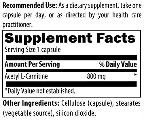 Acetyl-L-Carnitine is the acetylated ester of L-carnitine and plays an important role in the transfer and utilization of long-chain fatty acids, which are used in the production of energy. Each capsule contains 800 mg of Acetyl L-Carnitine.