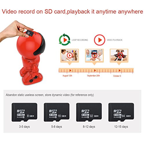 -. Feature : 1.IP WiFi Camera Wireless Network Camera Mini Rotatable Smart Camera Security Camera Mention Detector Defender for family 960P HD Cctv Camera Build-in MIC/Speaker Support Android IOS PC / 2.HD real 1.3 megalpixel 960P(1280*960) resolution / 3.Easy to set connect Wi-fi (WiFi not supported 5G) / 4.Two way audio function; Onvif (NVR Storage Support);Motion detection ;Clear Night Vision ;Pan 355 degree / 5.Support SD card recording and play back easily.
