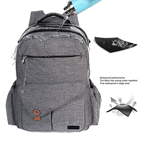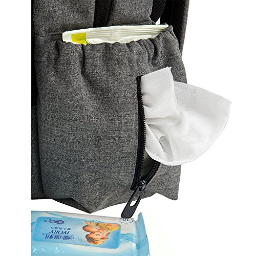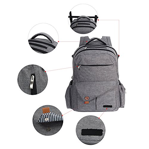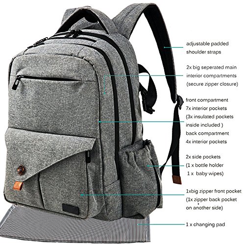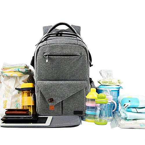 Large capacity which can put baby essentials and mom stuff in one bag Many of pockets to keep things easy organization With adjustable padded shoulder straps and breathable back panel makes you super comfortable to carry around Stylish designed and gray color is a great attraction for trendy mom and dad High quality made and water resistant Including changing pad, stroller straps, insulated pockets for keeping baby milk or water in right temperature for hours Perfect for go out like travel, shopping, Disneyland, zoo, or adventures