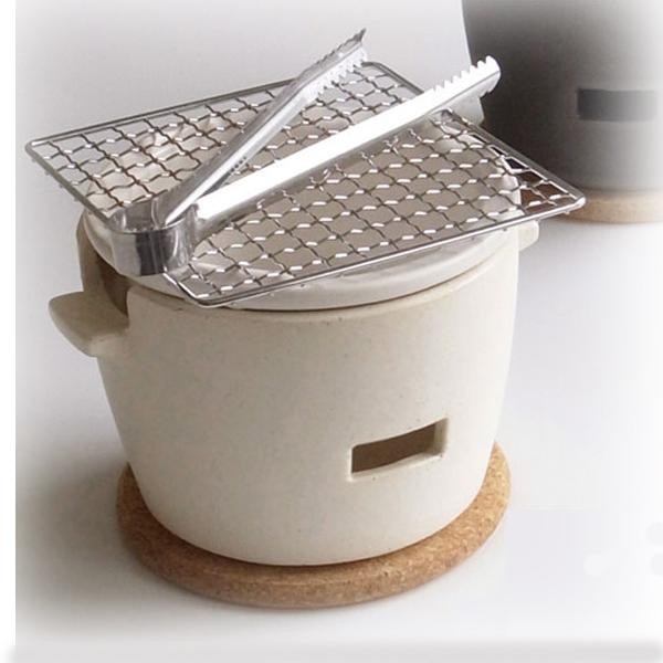 | コンロ内に水を入れて、その上に炭が入った五徳を乗せるため、熱がテーブルに伝わりにくく、シンプルでコンパクトな炭焼きコンロです! |